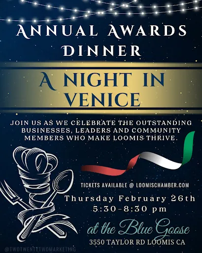 Show your commitment to the Loomis community with this foundational sponsorship. This tier includes your event entrance, dinner, and one complimentary drink ticket. You will also receive valuable recognition with your name and logo featured in our official event program and across all our social media channels.